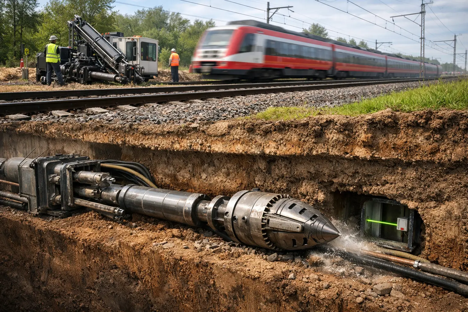 Budowa infrastruktury podziemnej w pobliżu linii kolejowych należy do najbardziej wymagających zadań inżynieryjnych w branży budowlanej. Instalacja sieci wodociągowych, kanalizacyjnych, energetycznych czy telekomunikacyjnych często wymaga przejścia pod torami kolejowymi bez ingerencji w ich konstrukcję. W takich sytuacjach stosuje się technologie bezwykopowe, które pozwalają prowadzić prace bez rozbierania torowiska i wstrzymywania ruchu pociągów. Jednym z najczęściej stosowanych rozwiązań są przeciski sterowane, umożliwiające precyzyjne prowadzenie instalacji pod przeszkodami infrastrukturalnymi.